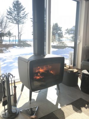 途中、ご主人が薪ストーブを焚いてくださいました。