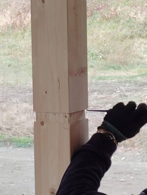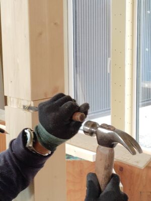 この日は内窓に取り付ける笠木のために、柱をのみで丁寧に加工していく作業。