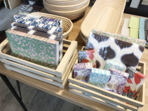 上の写真の商品はアメリカからのお取り寄せ雑貨。 下の写真の商品は在庫商品で、ペーパーナプキン。 どちらも販売しております。 他にも生活雑貨や、オブジェ、花瓶など少量ですが取り扱っています。