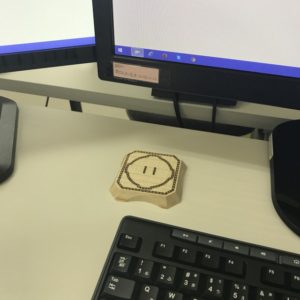 さて、パソコン横に写っているコップの下のコースター。