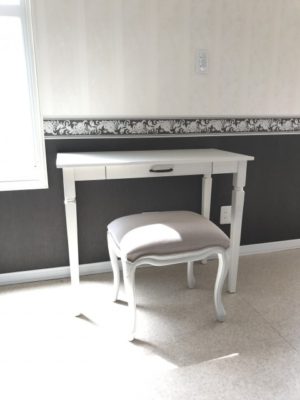 帯広市の店舗改修現場は美装が終わり、 ご提案させて頂いた家具や雑貨が届いたので検品・整理しました。 エステルームということで、可愛らしいインテリアで統一しています。