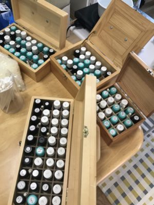 そして精油が並んでいいます。フルーツの香り、お花の香り、葉っぱの香り…