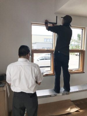 ↑カーテン工事担当のNさんと、施工してくださるMさん。