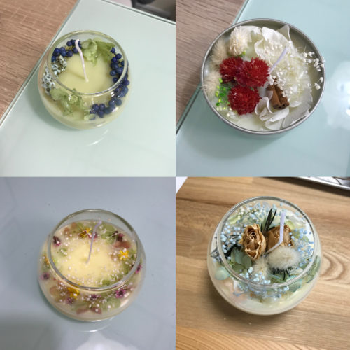 今回は、アロマキャンドルとアロマ椿ヘアオイルの2種類を作りました。