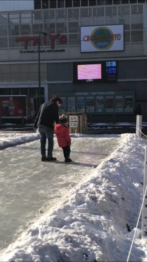街中にあるスケートリンクでスケートも借りられるようです。