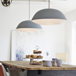 アルミ製の釣鐘型の本体に隠れた伝統的なレ・クリントのシェードが、