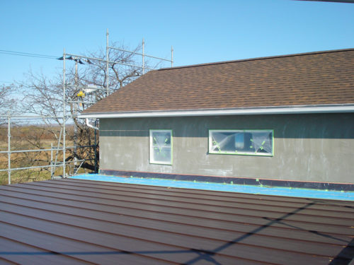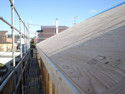 屋根の野地合板も張られ「家」の形状がわかって来ました。