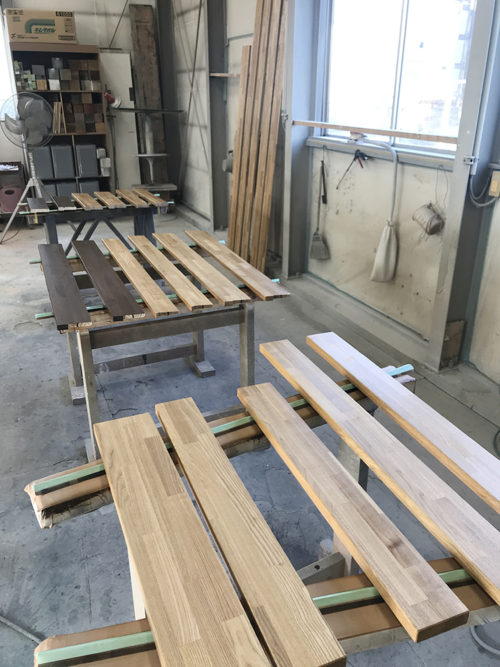 芽室は現在建築中のご住宅で使う部材の塗装の確認。