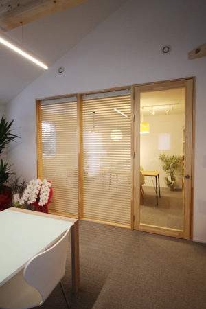 打合せスペースに木製ブラインドが付きました♪