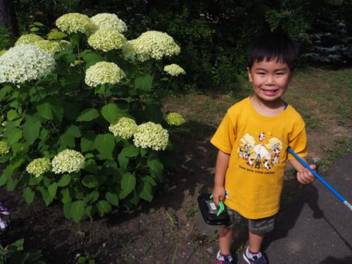 息子はちょうちょやトンボ、変な虫を追いかけて捕まえていました。
