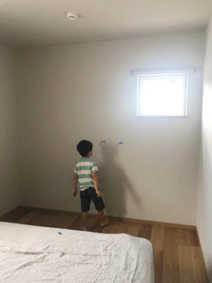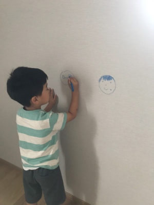 貼りかえる前に息子は壁にイタズラ描き…(笑)