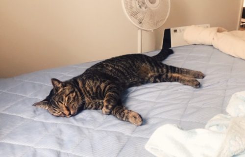 「ハルちゃん!」と呼ぶと寝ぼけながら「にゃーん!」と