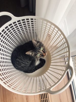 そして洗濯を干し終わると、必ずカゴに入ります。