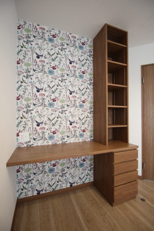 先日お引渡しをさせて頂いたご住宅にも春らしい壁紙を貼りました。