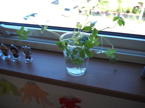少し切ってまた水につけました。根が出てきたら鉢に植えたいと思います。