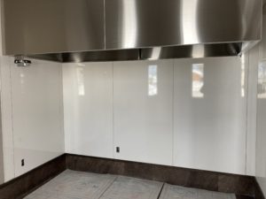 壁にはキッチンパネルを貼って衛生的に。