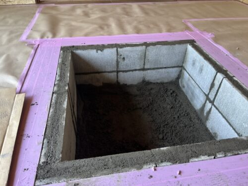 ブロックを積んで耐火モルタルで均して、