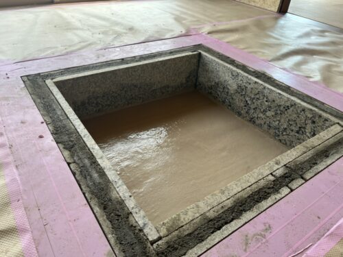 仕上げに御影石を貼って耐火性をUP。