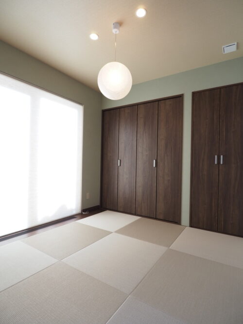 リビングにつながる和室は優しい色合いの壁紙をお選び頂き、