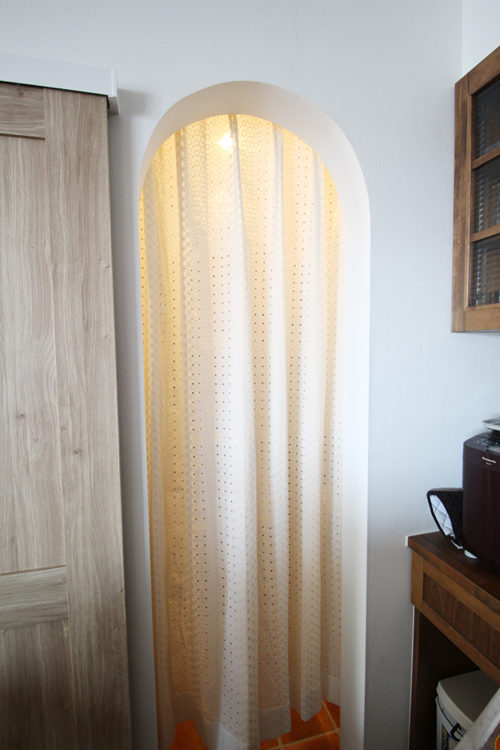 パントリー入口にかわいいカーテンをかけました