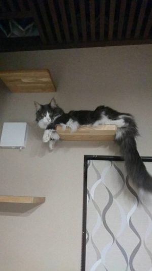 キャットステップでくつろぐ、A様邸のしんちゃん。