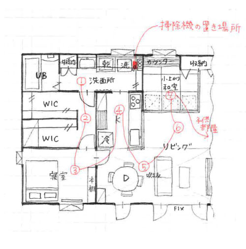 上の絵は、私の平日の家事動線です。