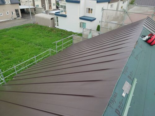 屋根工事と一緒に、破風、水切りの取付けも終了しました。