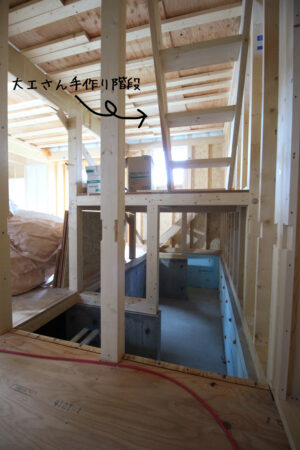 大工さんが中2階と2階に行ける仮階段を造ってくれました(*^-^*)
