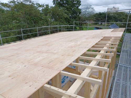 建物外部も構造用合板、タイベックシート(透湿防水シート)を貼って
