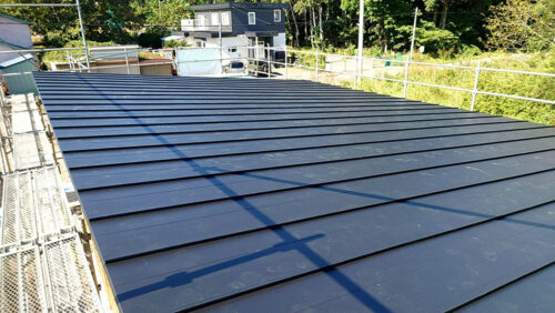 更にアスファルトルーフィングの上に板金を施工していき屋根工事が完了します。