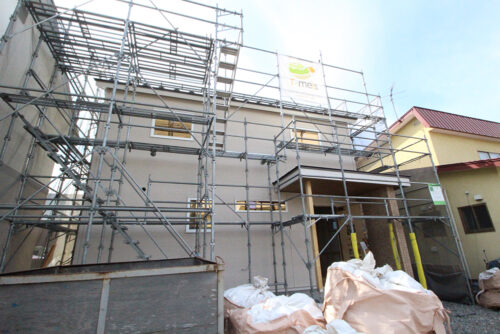 帯広市で建築中のK様邸では、外壁工事が終了し足場が取れました!!
