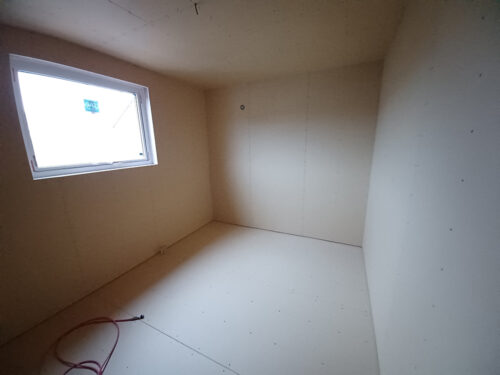 2階は壁、天井、床共に石膏ボード貼りが終了致しました。