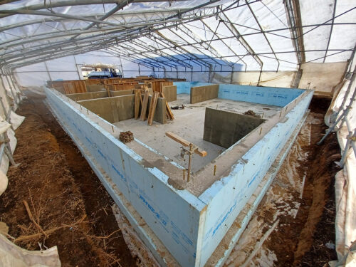 外周部の布基礎の外側に75mm、内側に40㎜の断熱材を取り付けています。