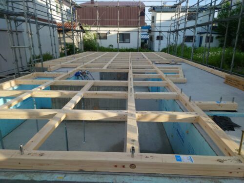 土台敷、床合板敷きが終了しました。