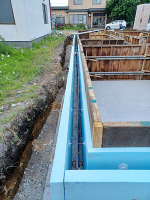 基礎高が低い住宅の凍結深度を低減させる目的で施工します。