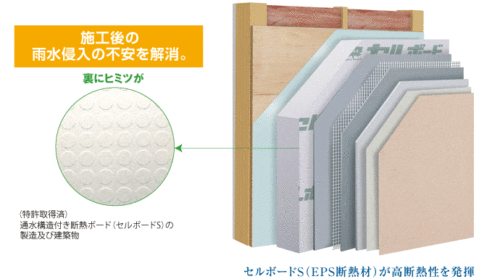外壁の通気層ですが、セルボードの裏に秘密があります。