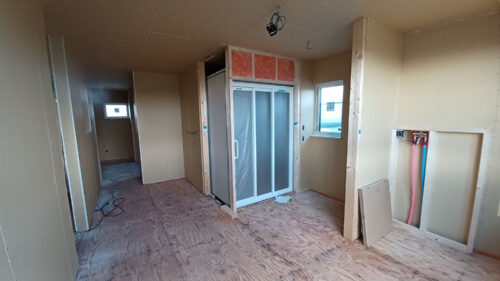 浦幌町で建築中のT様邸では大工さんによる内部造作が進んでいます。