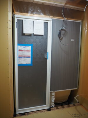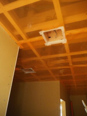 大工さん手作りの気密BOXを取り付け、テープで止めていきます。