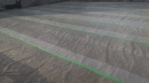 その後防湿シートを敷きます。その上に、断熱材を敷き込みます。