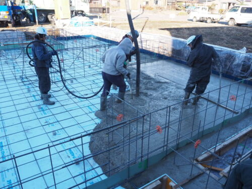 検査終了後、土間コンクリートの打設が行われました。