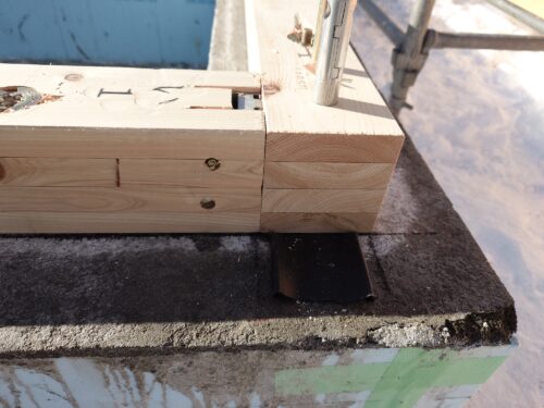建て込みが終わると、次に屋根の躯体を組んでいきます。