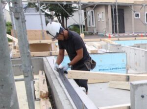 基礎と土台を緊結するためのアンカーボルトもこの時に入れていきます。