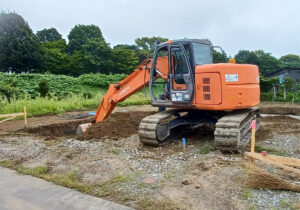 ティーメイスの基礎は基礎断熱工法のため総掘りしていきます。