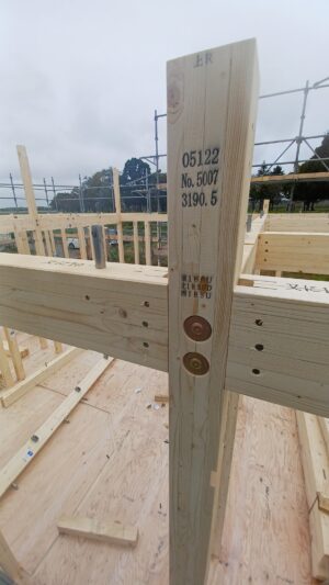 ティーメイスは在来工法ですが、柱と梁の接合部は金物を使い接合しています。