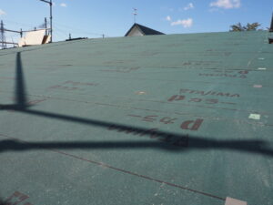 屋根合板の上に、アスファルトルーフィングという防水シートが施工されました。