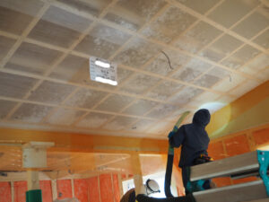 リビングの斜天部分に天井ブローイング工事が行われました。