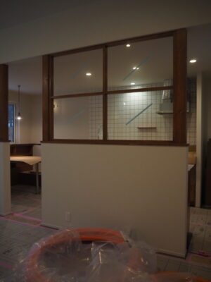 造作の内窓などで空間を仕切っていきます。