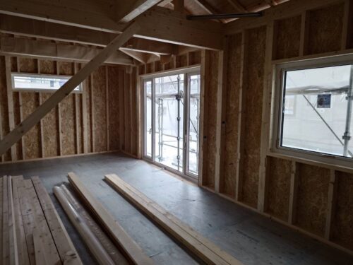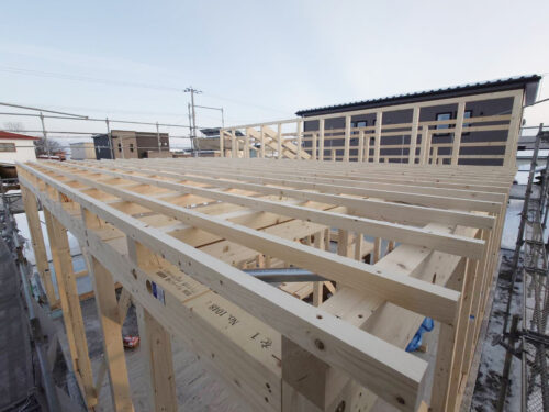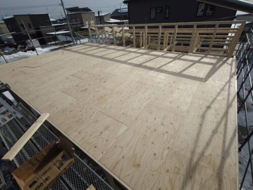 芽室町で建築中のF様邸では、大工さんによる外部工事が進んでいます。