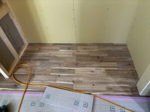 O様邸では床のフロア材が敷かれました。