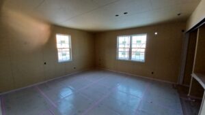 床がしっかりと養生され、大工さんによる工事が完了いたしました!